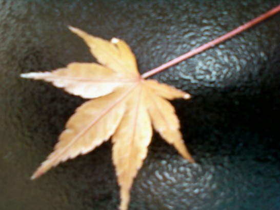 19日朝。神宮会館。昨日内宮で拾った紅葉の落葉。小ぶりで可愛い。