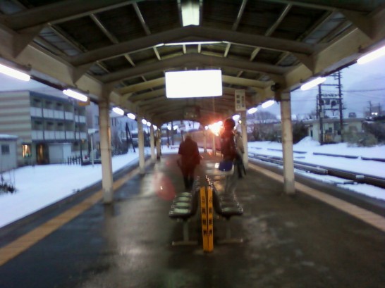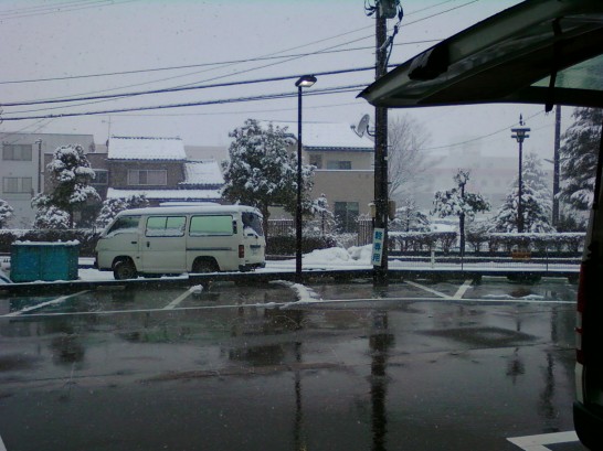 10時過ぎにホテルを出て、徒歩でJR高岡駅まで。(滑るので)足あとのない部分の雪をサクサクと踏んで歩く。5分しか歩かないのに駅に着くまでには雪で傘が重くなるほど。ホテルでもらったカイロを3つも貼り付けているのだが、よく効いていてありがたい。