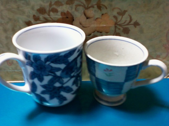 コーヒーカップ。最近のお気に入りは下の二つ。(左は川柳展望全国大会でいただいたもの)