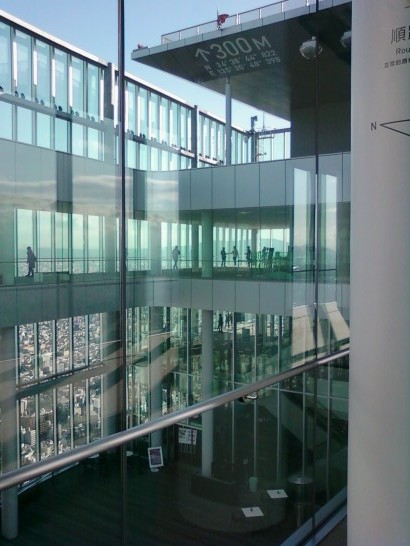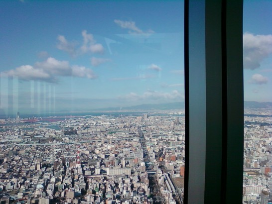 8時半頃ホテルを出る。天気がよいので、あべのハルカスまで。2Fで展望台入場券(当日券、1500円)をゲット(8時50分)。エレベーターで16階まで。少し待たされてから、専用のエレベーターで60階まで。エレベーターには私を入れて4人。