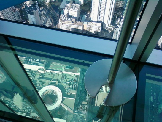 高いところは苦手(矛盾?)なので、怖々下を覗く。足元がびくびく。四天王寺や、京都タワーの位置をあれかこれかと確かめながら2周。