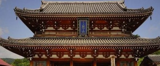 入山受付所で入山料(500円)を支払い、総門へ。左右の永代常夜燈に挟まれた道をまっすぐ山門へ。