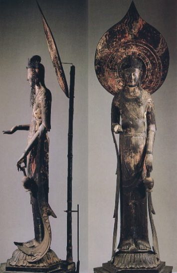 百済観音の性格は仏教の「空(くう)」の体現とか。超現実的な痩身であり、存在が鋭角的。この仏像には世俗的なものの入り込む余地がないように感じられる。