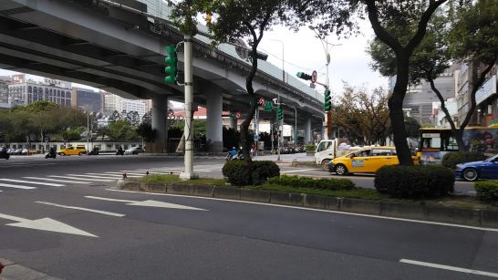 宿泊のホテルを出て徒歩15分ほど、中山北路を通って台北駅まで。(中央の赤い屋根が台北駅)‥‥‥‥‥‥‥‥‥‥‥‥‥‥