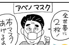 新型コロナ流行がパンデミックを起こすと世界中の市場からマスクが消え、日本でも入手困難になった。そこで、安倍首相は4月1日に全国のすべての世帯を対象に布マスクを配布する方針を明らかにしたのね。4月17日からポストへの投函が始まったが、首相の経済政策アベノミクスになぞらえてアベノマスクと呼ばれ、海外メディアでも失笑気味に取り上げられたとか。(いまは真似をする国が増えてきているのね)