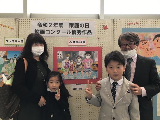 同封の第6回ジュニア県展2020(和歌山県ジュニア美術展覧会)によると、立体部門で〇〇君が「プラスチックでかなしむ海ガメ」と題した作品でなんと特別賞!! (写真を見て、感動したのね。) 妹の○○ちゃん(小1)の「うみからのおくりもの」も特別賞を受賞。絵画部門でも〇〇君が「紀伊風土記の丘の思い出」、〇〇ちゃんが「アサガオいっぱいさいたよ」で入選。