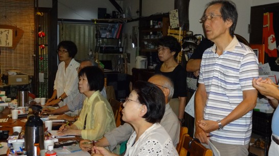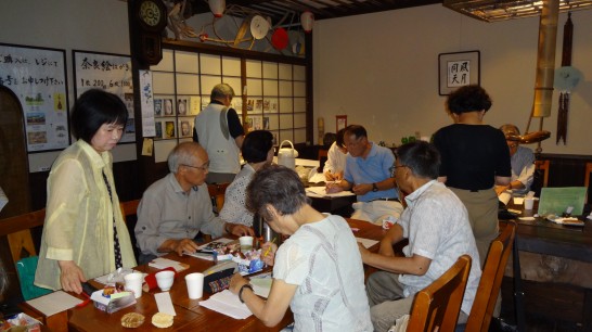 蒸し暑い中、奈良の蕎麦処「かえる庵」には14名の参加で賑やかになりました。