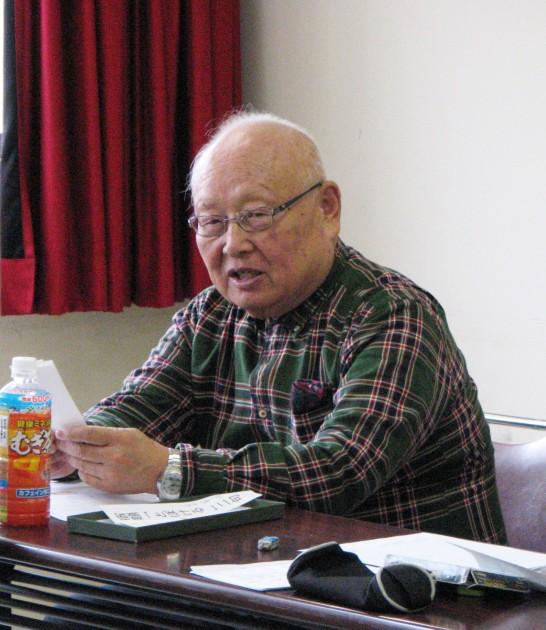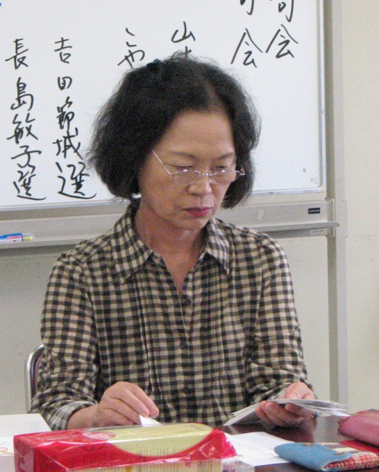 なお、利秋さんから「絵葉書(平和美術展出品の川柳五句)」、良種さんから「すだち」、紅雷さんから中国名酒「桂花陳酒」の差し入れがありました。ありがとうございました。すだちはみなで分けましたが、桂花陳酒は、じゃんけんで一番負けた人ということで、白熱のじゃんけん大会の結果、最後まで負け続けた隆太さんが見事獲得されました。