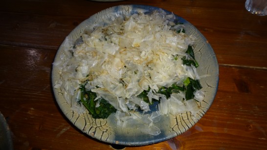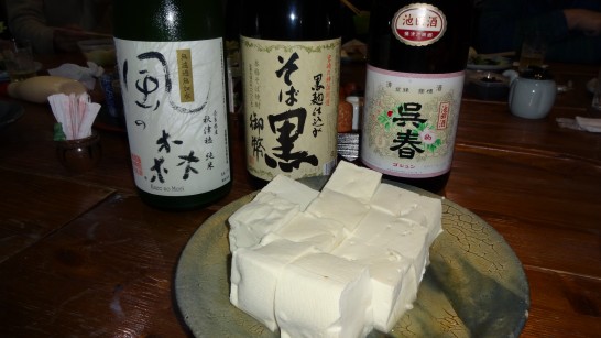 手作り奈良漬(三年物と一年物)白菜漬物、山陰のソイかまぼこ天婦羅、旅のお土産などの差し入れに、ほんまもんの豆腐、季節感溢れる甘いほうれん草やキビナゴの焼き立てなどなど・・・美味しいお酒の飲み比べ。両方のお酒の栓を同時に空けたところ、片方のお酒は栓が天井にまで『ポン!』と飛びました。その後、先にカラッポになったのは『ポン!』のお酒でありました。 御馳走さま~