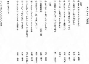 米山明日歌、勝又恭子、渡辺遊石、中前棋人(途中参加)の10名。