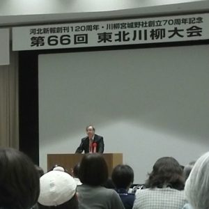 川柳宮城野社が今年で創立70周年を迎え、また、地元新聞社の河北新報が創刊120周年を迎えたことを記念して、共同事業として「第66回東北川柳大会」が10月1日、仙台国際センターで東北はもとより全国各地から260余名の参加を得て開催されました。