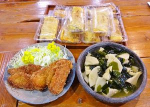 まずはビールで乾杯! 柔らかい若竹煮、お酒は奈良の銘酒{梅の宿・三年仕込}これは相性がピタリと決まってすぐに空。塩麹に漬け込んだササミフライに自家製のキャベツと菜の花サラダ、創作料理の傑作品はオムレツ、中が二つに仕切ってあり片方はキムチそして反対側はキノコと山菜ソテーという二物衝撃法