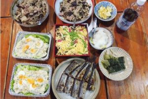 なんといっても秋は秋刀魚! 然るべき厨房で焼かれた熱熱の秋刀魚と日本酒発祥の地で吟味を重ねた銘酒。さらに差し入れはチラシ寿司(みほ子さん)ポテトサラダ(夫美子さん)ワインとキノコソテーは盛隆さん こちらも写真でどうぞ\(^o^)/