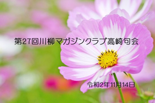 11月14日に標記句会を高崎市労使会館で行った。参加者は、睦悟朗、たかを、七五、もとい、悦子、潤の6名。欠席投句は、敏香、覚、良江の3名。句会は句評会を中心に盛り上がった!サロンでは、特選句などに感想を述べあった。