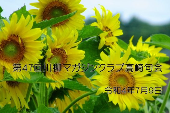 7月9日、川柳マガジンクラブ高崎句会を行った。参加者は、星野睦悟朗、竹中たかを、田島悦子、湯本良江、簗瀬みちよ、三浦拓也、勢藤潤の7名。欠席投句者は、宮崎正男、宮崎一子、山津隆雪、田口もとい、大沢覚、天野敏香、滝沢博美の7名。課題は「叫ぶ」と「弱い」、披講後も没句などについて熱心な議論が続いた…。