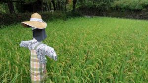 稔るほど頭を垂れる・・・・、コラッ案山子!頭が高いー!