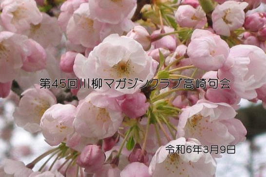 標記句会を3月9日に行った。参加者は、星野睦悟朗、竹中たかを、田口もとい、黒崎和夫、石原惠美子、田島悦子、簗瀬みちよ、湯本良江、勢藤潤の9名、欠席投句は天野敏香、滝沢博美、大沢覚、横澤七五、の4名。相変わらずの楽しい句会だった。句会の結果は、