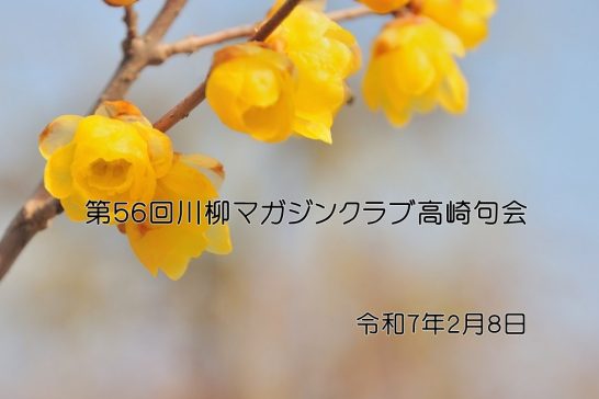 2月8日に標記句会を行った。参加者は、横澤七五、星野睦悟朗、竹中たかを、田口もとい、内田浩三、石原惠美子、簗瀬みちよ、勢藤潤の8名。欠席投句は、大沢覚、天野敏香、滝沢博美の3名。前橋は小雪がちらついていたが雪のため来れない方もあり人数はいつもより少なかったが、句評会は盛り上がり楽しい時間であった。結果は、