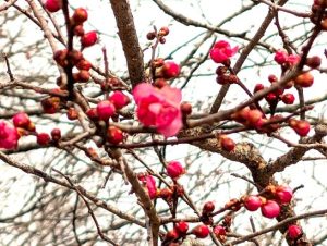 こう温かくなるとあの寒波がウソのようで、野辺の小さな花や紅白の梅が綻び始めました。心なしかワクワクするのは私だけではなく、行き交う人も微笑んでいるように見えます。