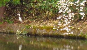 早速、謙信公、鷹山公に参拝し、お堀を一周して一時間ほどの花見。途中で青鷺とも出逢うことができました。