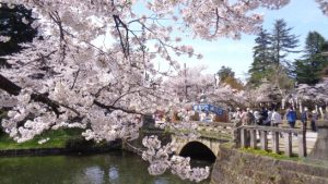 米沢は、上杉謙信公ゆかりの地で、四方に堀がある平城跡ですが、そこは桜の名所でもあります。