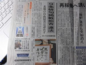☝ 9条俳句掲載拒否 違法 表現の自由侵害は認めず さいたま地裁判決提訴2014年8月、判決2017年10月13日)