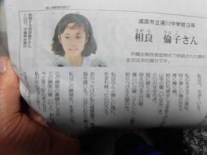 平和を願う中学生の純粋さに胸が打たれるばかり、、。