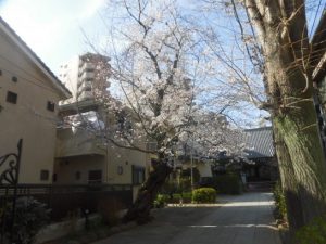 ☝ 毎度登場します。東京都文京区千駄木の「大観音」境内の桜です。隣が川柳マガジン東京句会の会場、私立駒込学園中学高等学校です。
