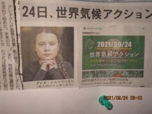 久し振りに朝刊にグレタ・トゥンベリさんが登場しました。総裁選挙の猿芝居を見たらなんと言うか。身震いしました。