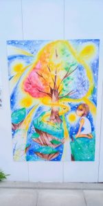 金曜日の午後から自宅で過ごす次男を、月曜の朝「福祉園」に送って行きます。工事現場のフェンスにこんな絵画が掲示されています。 タイトルは「パラリン絵画」です。作者の年齢その他の情報は一切ありません。作品は、「それらとは独立した」価値があります。