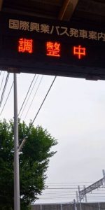 都営三田線の高島平から東武東上線下赤塚を結ぶ国際興業のバスは、23区とは思えない過疎地域ダイヤです。一時間に多くて2本。最終が19時台です。成増・東武練馬方面を含めて、〈次のバスは〇〇駅方面、到着まであと〇〇分〉の電光掲示板があります。もう、一月以上調整中のままです。呆れ果てると人々は沈黙します。