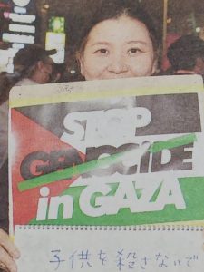 川柳とは別の集まりで、こんな話をしました。エレベーターの後ろにベビーカーが見えたので、急いで「開くボタン」を押しました。お父さんと赤ちゃんが乗ってきました。正面の大鏡を観て赤ちゃんが嬉しそうにニコニコしました。「可愛い赤ちゃんだね、どこの赤ちゃんだろうね?」団扇が話しかけると一層ニコニコと笑いを返した赤ちゃん。「ジョークが分かる赤ちゃんなんですね」に「サアー」と答えたお父さんも嬉しそうでした。ありふれた平和な風景ですね。団扇は突如ガザの映像を思い浮かべてしまいました。父親が子どもの足に「名前を大書」しているのです。「どうしてこんなことをするの?」と子は問いかけていません。ここまで話して団扇はこみあげて絶句しました。ガザ地域は種子島と同じ面積だそうです。そこに200万人、45パーセントが14歳未満の子どもだそうです。解説は無用ですね。