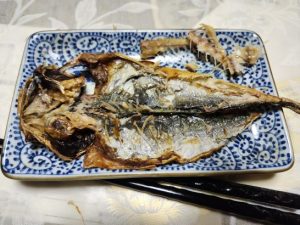 鯛の兜煮の第二弾、鯵の干物を味わった後の図。