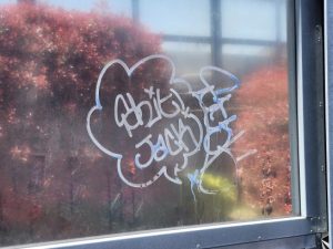 懸命に読み解こうとしたが、無理でした。この辺りでよく見かけるマーク?です。どれほどの縄張り?を持つ団体か知れませんが、いわゆる「マーキング」の類ですね。