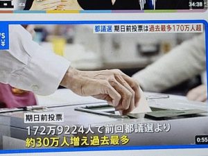 地方選挙といえど首都の議会選挙、全国的な注目を浴びたことでしょう。続く参議院選挙に、どう影響するのでしょうか。