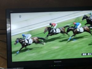 馬の名前やら、騎手の名前やら、配当金?やらは?????なので、疾走の場面だけ見て、チャンネルを変えます。