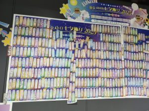 帰ると、東京も七夕一色。願いでビッシリ埋め尽くされていました。猛暑と九州の地震の多発、参議院選挙。2~3時間の睡眠で、語りつくし飲みつくした参加者に混ざり、団扇が一番睡眠時間と休息を取れたクラス会でした。