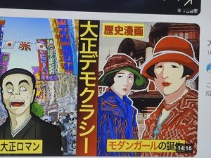 大正デモクラシーは、大正時代(1912年~1926年)に、日本で起こった民主主義的な思想や運動の総称です。1922年7月15日は日本共産党が誕生しましたし、1925年には普通選挙法が制定されています。同じ年に治安維持法が制定されています。大正デモクラシーの教育を受けた父が、一兵卒としてインドシナ・台湾・満州を巡った歴史に、改めて思いを深くします。〈大正デタント〉の意味も考える時です。エノケンの洒落男・♪俺は村中で一番モボだと言われた男 やや遅れて発表されたようです。