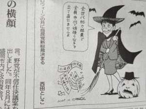 総裁選の結果が出た直後の高市早苗さん、「ハロウィーンの月に・・・・」というタイトルが付きました。公明党の政権離脱で、2025年10月の政局は更に混迷を極めて来ました。 あっ、猫川柳思い出しました。吾輩が猫であるとは知らなんだ 空気読み席を外した猫である 犬派でも猫派でもないようです。