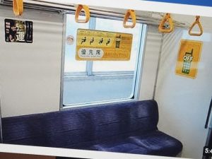 こちらは「専用席」でなく「優先席」です。前にも書きましたが、団扇は一般席が空いていても「優先席」に座ります。より優先されるべき人に譲るためです。「優先席」は各車両の前方と後方にありますから、妻殿も団扇も1か4の乗車口に並びます。「優先席」が空いているのに誰も座らない風景をよく見かけます。若者に「空いている時は、座っても良いのですよ」と声を掛けたくて、いつもウズウズする団扇です。遠慮なく座り、すっと譲る外国の方に、合理性とマナーの同居を発見します。「シルバーシートの由来」1973年に導入した際に、新幹線0系のシルバーグレーの予備布地の在庫がたまたまあったからだそうです。最近は、クッションや奥行きなどに差をつけた座席も登場しています。