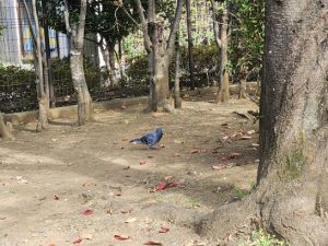バスを待つ間のカシャリ、鳩はポーズは取りませんが逃げたりもしません。シンキングタイムのつもりです。