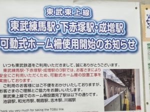 東武東上線で、〈ホームドア〉の設置が進んでいます。株式会社東武鉄道では〈可動式ホーム柵〉と呼んでいることを知りました。あすは息子夫婦と孫たちとの新年会です。