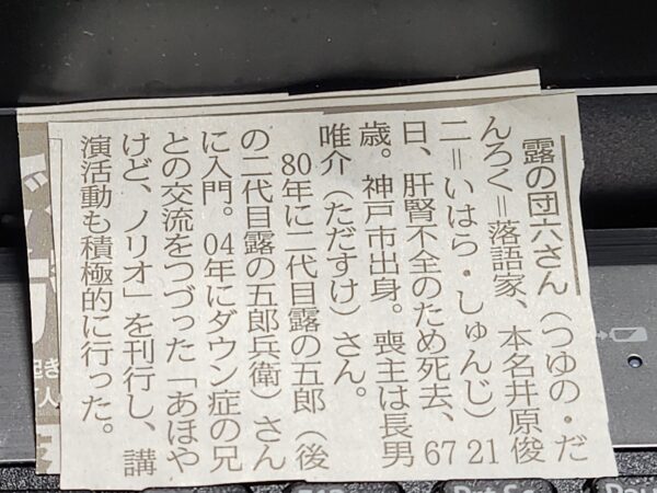 東京新聞の訃報欄で 発見しました 噺家さんとしての 存在 著書や講演活動 チラリとも 存じ上げません でした 接触が 皆無だったことが 悔やまれます