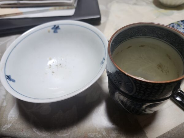湯呑で茶を飲み 茶碗で飯を食う 今朝は 汁椀は 省略しました