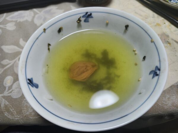 湯呑で茶を飲んだ後は 何杯目かの茶を 茶碗に移して 南高梅を入れます 梅をほぐしながら 茶碗を洗い 種を丁寧にしゃぶって 梅味の茶を 啜ります 昔の信州では 椀も碗も皿も 自分の箱膳 の下に収納していました 台所で洗ったりしません 洗剤を必要とするような 油っぽい おかず はなかったのでしょうか 今日は 午後から 白金高輪の 豊岡句会
