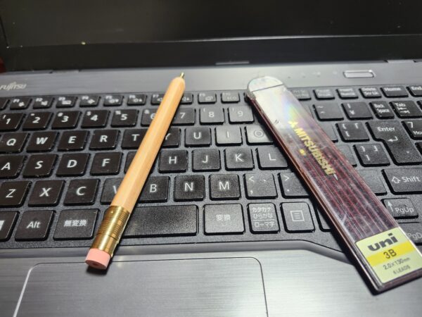 句箋は鉛筆書きが普通ですが 団扇は 三菱uni太字鉛筆を使用していました 最近は削る手間のいらない 太字シャープペンを愛用しています それが見当たりません 茶色のデザインが気に入っていたのは勝手ですが 他社のメーカーにも 同様の製品があろうとは 夢にも思っていませんでした OHTOというメーカーの製品を発見して 買い置いてあった uniの替え芯にもフィットすることも 確かめました 団扇は弘法でないので 筆を選びます