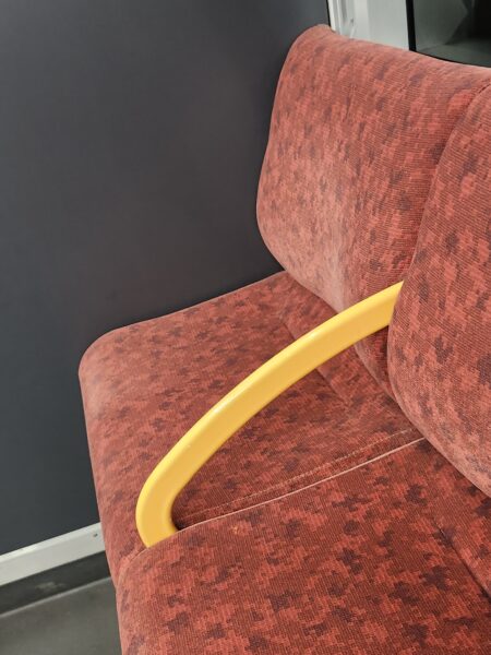 最近 都営三田線の シルバーシートが 模様替えしました 相互乗り入れしているので 東急線の車両かも 知れません 高齢者の体型に合わせた配慮なのでしょうか 椅子の奥行きが短く なっています 深く腰掛けて 背もたれに寄りかかっても 立ち上がり易い設計なのでしょうか やや前方に傾斜がある感触は 妻殿の観察です
