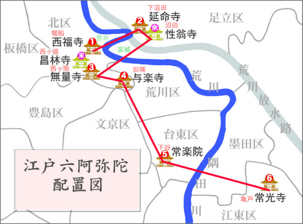 今も六阿弥陀は、千年前の一人の女性を掬う形で、東京の大都会に北斗七星の柄杓型の道のりを記しています。