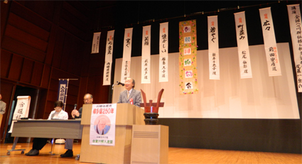 私が時間を頂いた講演は、「川柳の全国伝播と柳多留類の刊行」ということを通して、歴史的な広がりを辿るとともに、句会、特に任意選者が増えることにより月並化していく数の上での繁栄と質の上での向上が相容れなかったことへの警鐘で、柳多留250年という節目、言い換えれば文芸川柳250年の節目に、川柳を考える(投句のための句を考える事とは異なる)機会にしようということでした。