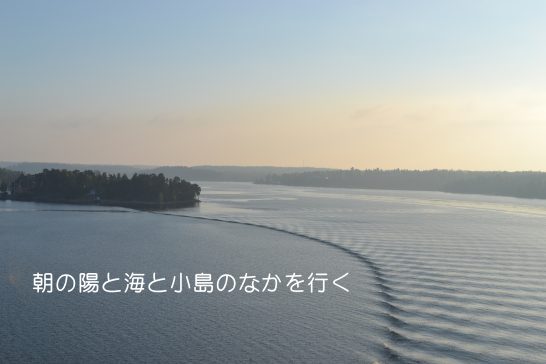 平成23年のバルト海クルーズで、フィンランドのヘルシンキからスエーデンのストックホルムに入港する際の情景です。朝焼けの中、沢山の小島をぬって穏やかに航行する様は「また来たい」と思わせるものでした。